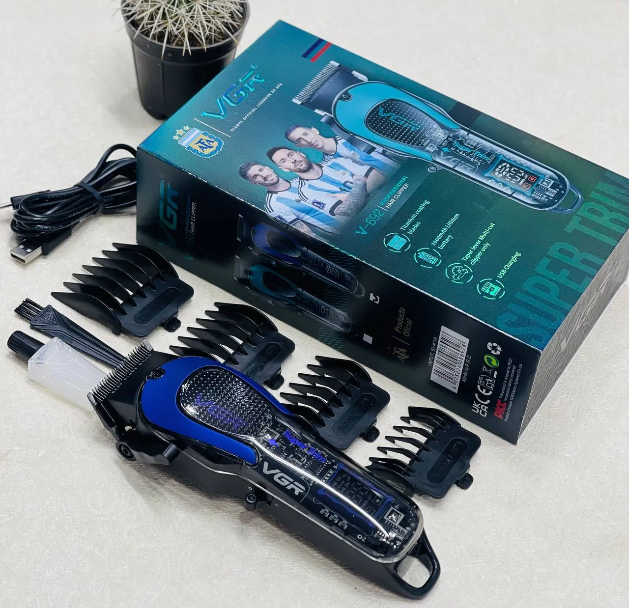 ست ماشین اصلاح وی جی آر مدل V-692 با تمرکز بر تیغههای دقیق، طراحی ارگونومیک و عملکرد پایدار طراحی شده است.