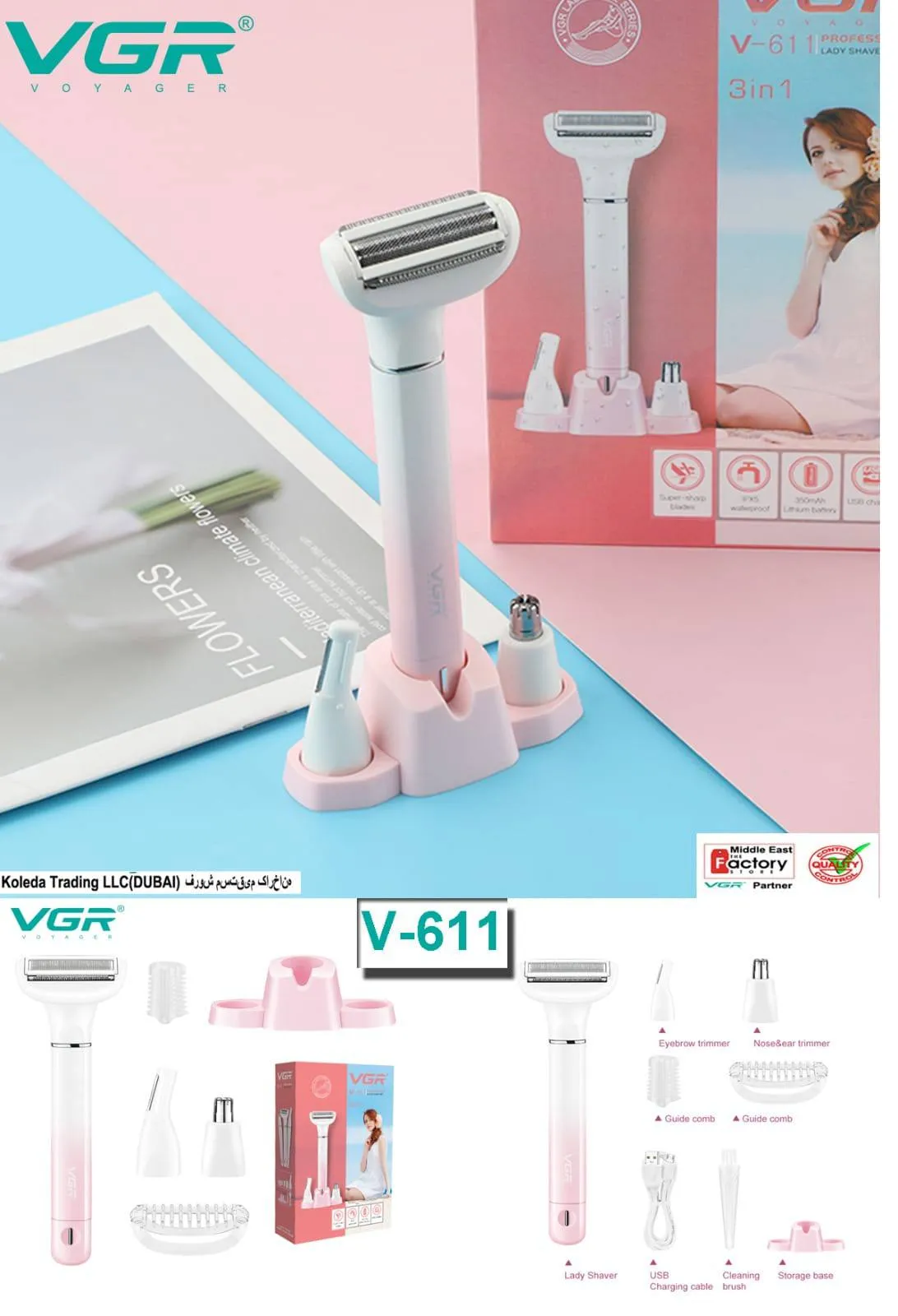 شیور وی جیار (VGR) مدل V-611 یک ماشین اصلاح چندمنظوره و شارژی مخصوص بانوان است که با طراحی ارگونومیک و امکانات کاربردی، تجربهای راحت و دقیق برای اصلاح موهای بدن، صورت و نقاط حساس فراهم میکند
